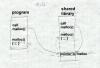 All shared library schemes work essentially the same way. At link time, the linker searches through libraries as usual to find modules that resolve otherwise undefined external symbols. But rather than copying the contents of the module into the output file, the linker makes a note of what library the module came from, and puts a list of the libraries in the executable. When the program is loaded, startup code finds those libraries and maps them into the program's address space before the program starts, Figure 1. Standard operating system file mapping semantics automatically share pages that are mapped read-only or copy-on-write. The startup code that does the mapping may be in the operating system, the executable, in a special dynamic linker mapped into the process' address space, or some combination of the three. |